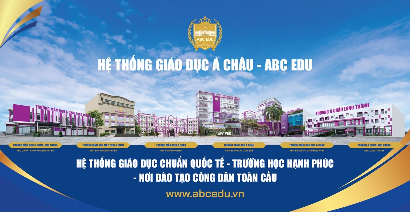 Thông tin về Hệ thống Giáo dục Á Châu (ABC EDU): Hệ thống Giáo dục Á Châu (ABC EDU) bao gồm các trường liên cấp từ Mầm non đến THPT tại Đồng Nai và TP.HCM. Với hơn 10 năm kinh nghiệm, ABC EDU tiên phong tích hợp các chương trình quốc tế hàng đầu như Cambridge và SACE International cùng chương trình của Bộ Giáo dục và Đào tạo, nhằm đào tạo nên những thế hệ học sinh tài năng, bản lĩnh và giàu lòng nhân ái.
